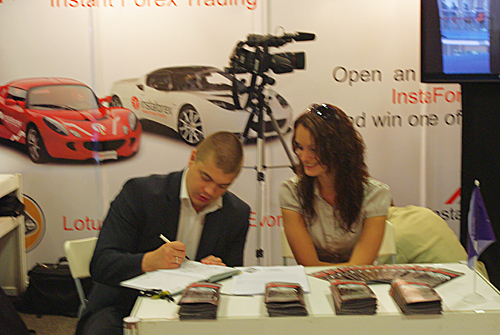 Each who visited the company’s stand was getting booklets and brochures, and someone was lucky to obtain precious prizes. Within the promo-campaigns the broker was raffling money bonuses for trading accounts, iPhone, iPad and tablet computer Samsung Galaxy Tab.