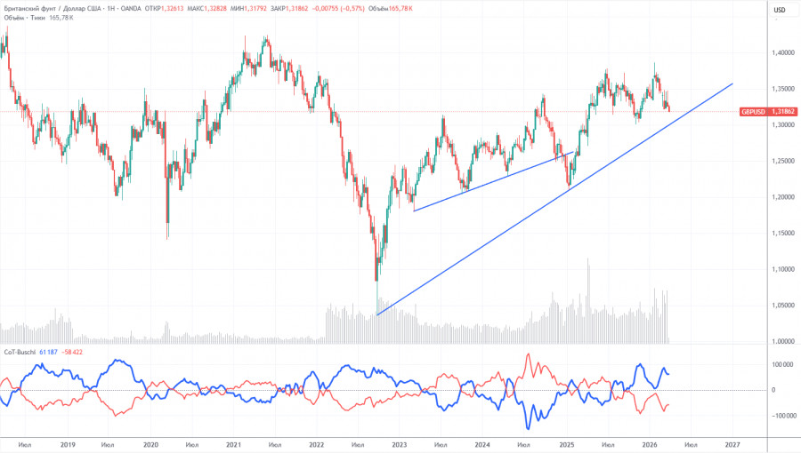 В долгосрочном плане доллар продолжает снижаться из-за политики Дональда Трампа, что отлично видно на недельном ТФ(иллюстрация выше). Торговая война будет продолжаться в том или ином виде еще долгое время, а ФРС в любом случае находится ближе к возобновлению монетарной политики, чем ЕЦБ или Банк Англии. Из-за вечного прессинга Дональда Трампа и смены руководства уже в мае. Однако сейчас на первом месте стоят геополитические факторы, которые оказывают сильнейшую поддержку американской валюте. Согласно последнему отчету COT(от 24 марта), группа «Non-commercial» открыла 2,2 тысячи контрактов BUY и закрыла 4,9 тысячи контрактов SELL. Таким образом, нетто-позиция некоммерческих трейдеров увеличилась за неделю на 7,1 тысячи контрактов.