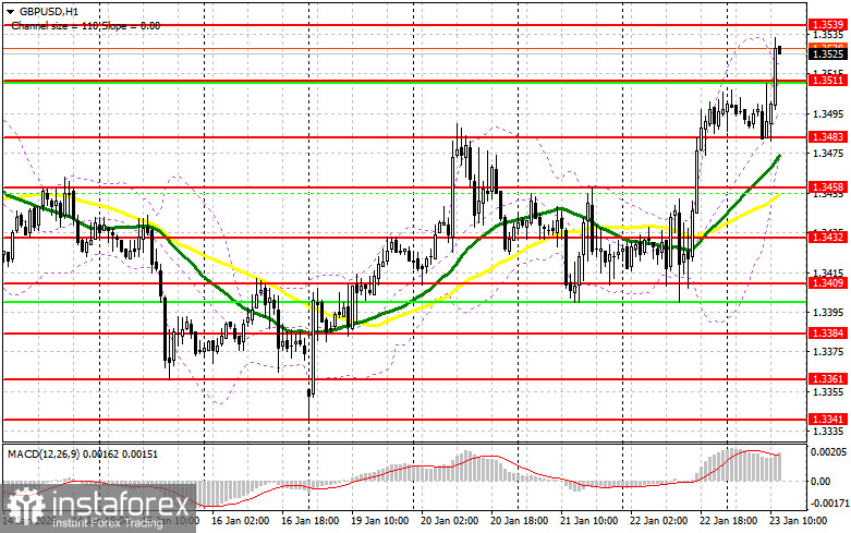 Сильные данные по индексам PMI Великобритании оказали хорошую поддержку фунту, продолжив развитие бычьего рынка. Далее акцент будет смещен на индекс PMI для производственной сферы США, индекс PMI для сферы услуг и композитный индекс. Кроме этого, нас ждут цифры по Университета Мичигана по настроениям потребителей и инфляционным ожиданиям. Если данные выйдут лучше прогнозов экономистов, давление на пару вернется. В таком случае первого проявления покупателей жду в районе поддержки 1.3511, образованной по итогам первой половины дня. Только формирование там ложного пробоя даст точку входа в длинные позиции в расчете на восстановление к уровню 1.3539. Прорыв с обратным тестом сверху вниз этого диапазона приведут уже к новой точке входа в длинные позиции с перспективой выхода на 1.3564, что лишь укрепит развитие бычьего рынка. Самой дальней целью окажется область 1.3590, где собираюсь фиксировать прибыль. При сценарии снижения GBP/USD и отсутствия активности со стороны быков на 1.3511, давление на пару возрастет. В таком случае лишь формирование ложного пробоя в районе 1.3483 будет подходящим условием на открытие длинных позиций. Покупать GBP/USD сразу на отскок собираюсь от поддержки 1.3458 с целью коррекции в 30-35 пунктов внутри дня.