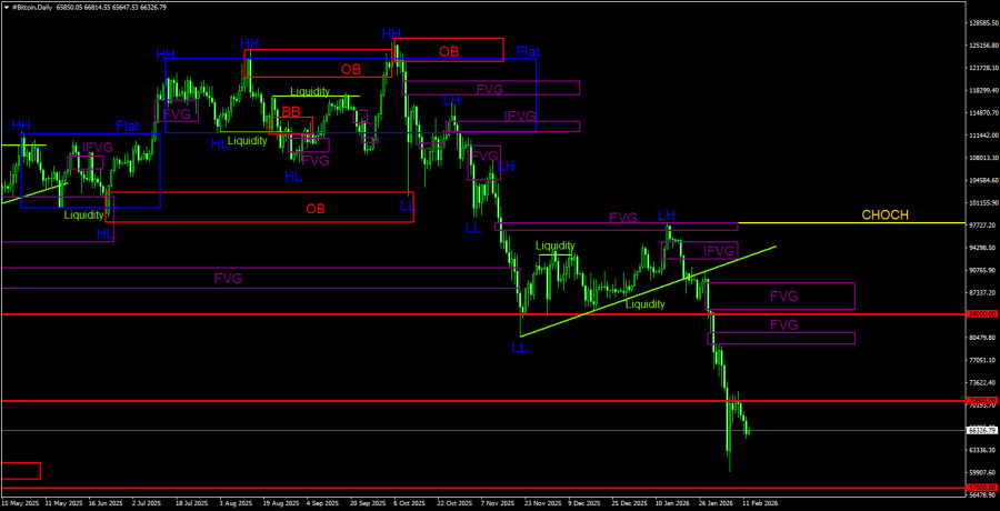 Биткоин подешевел с октября прошлого года более, чем на 50% и в целом не демонстрирует никаких признаков завершения падения или хотя бы небольшого восстановления. «Бычьих» паттернов нет, слома нисходящей структуры нет и не предвидится в ближайшее время. Таким образом, уже в ближайшее время котировки могут опуститься к уровню 57 500$. Отдельно хочется сказать о других криптовалютах. Практически все они также продолжают падать. Если эфир, солана и несколько более или менее стабильных криптовалют просто падают вслед за биткоином, то целая орда